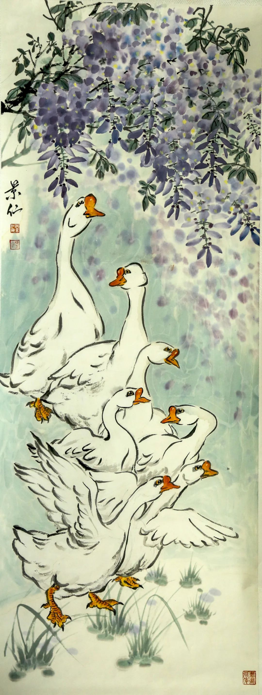 嘉定镇街道国画创作班是本次展览的主要团队。他们以江南文化为基础,结合精湛的技艺和深刻的思维,通过笔墨纸砚将个人情感与时代脉搏相结合,以书画艺术的形式定格画面和情感。