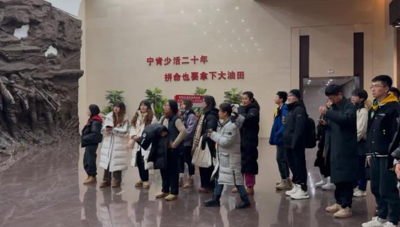 14点左右,老师和学生一起走上铁人纪念馆47级台阶,来到铁人纪念馆。在评论员充满情感的故事中,王进喜带领石油工人艰苦奋斗、人们扛着钻机、破冰取水、开钻等感人场景仿佛就在眼前。