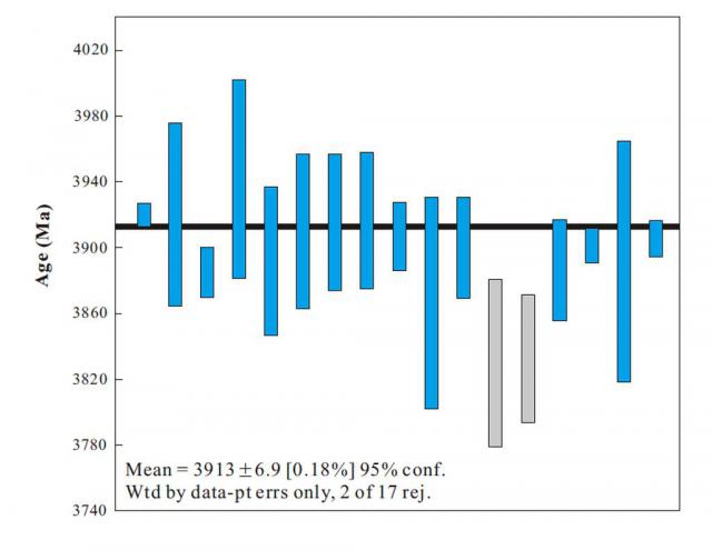斜锆石的 Pb-Pb 根据定年分析,岩屑的年龄约为 3913±7Ma 2008年,显然比阿波罗之前任务采集的偏碱岩屑更年轻。