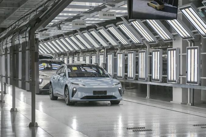 蔚来市第二先进制造基地生产线,汽车正在下线。袁兵 摄