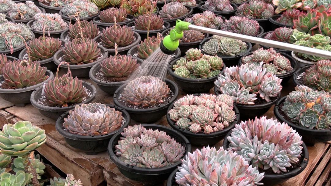 除了“销冠”蝴蝶兰,精致、娇小、“柔软可爱”的肉质也吸引了很多人购买。在虹桥花谷的温室里,数百种“肉质”植物,如橙梦露和冰玉,都摆满了花架。便宜又容易喂养,对新手花卉养殖顾客特别有吸引力。