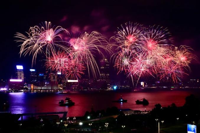 香港维多利亚港烟花汇演。新华社记者 朱炜 摄
