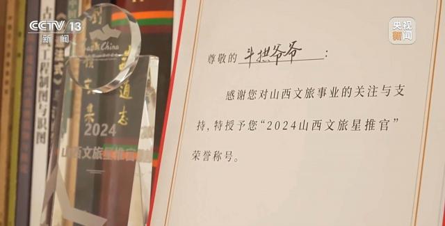 本周,王永先收到了山西文化旅游部门颁发的年度文化旅游明星推官证书,感谢他对文化旅游事业的关注和支持。