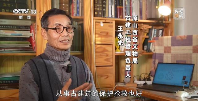 山西省文物局古建工程管理负责人 王永先:制作视频的想法诞生了。一方面,我从事古建筑保护、抢救和研究多年,积累了几十年的工作。我想总结一下这些创造技术和诀窍,和大家分享一下。另一方面,对于年轻人来说,他们知道的不多,只是一般的。他们知道这个好,但有时候他们说不出为什么。也就是对中华优秀文明、中华优秀古建筑文化的认识不够,这两个加起来,迫使我自己加任务。