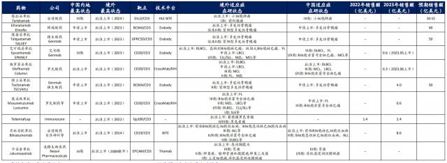 在这个“临界点”上,全球企业之间的决定性差距还没有拉开。虽然一些领先的跨国制药公司的计划比较早,但大部分只是推广到 I 比如罗氏旗下正在开发系统性红斑狼疮适应症的临床阶段。 Mosunetuzumab,IGM/ 赛诺菲旗下针对类风湿性关节炎 / 红斑狼疮的系统性 imvotamab 等。