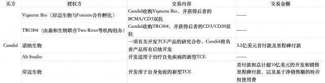 最近,成立只是 3 美国“黑马级”创新药企业个月 Candid Therapeutics 连续官宣 3 项相关 TCE 商品交易,披露金额超过 13 一亿美元。算上今年 9 月收购的两家公司 TCE 概念创新药企业,Candid 已密集完成 5 起 TCE 商品合作,而且所有的合作对象都是中国公司或中国人在美国创立的药业公司。。