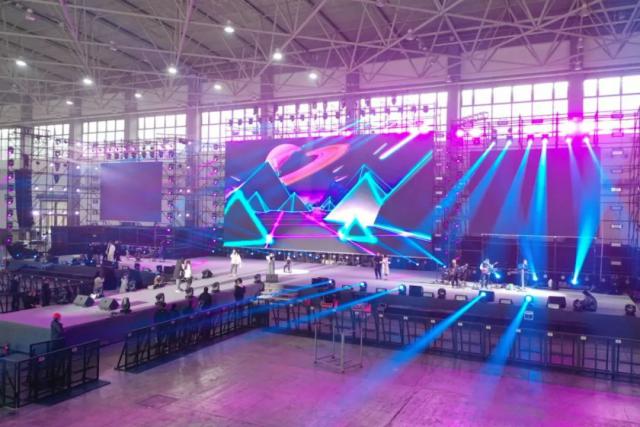 在贵阳国际会议展览中心一号大厅主会场的记者看到,主舞台、灯光、音箱等的建设已经完成。在舞台上,演员们的排练充满了激情,与灯光的节奏相呼应。五颜六色的灯光和美丽的舞台相互辉映,光影交错展现出无尽的魅力。