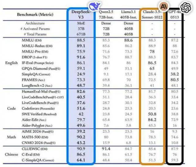 在微软、Meta、Google 都在冲着 10 当万卡集群进行大模型训练时,DeepSeek 在 2000 个 GPU 上面,花不到 600 万美元和 2 在一个月内,对齐完成了。 GPT-4o 和 Claude 3.5 Sonnet 测试结果。