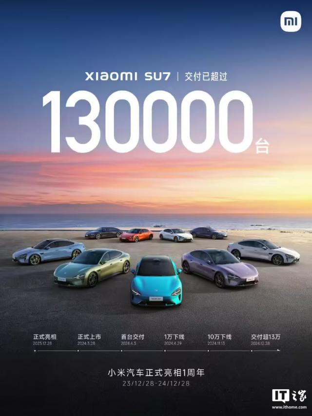 据 IT 昨天(12月12日)世家报道 月 28 日本)小米汽车正式亮相 1 周年纪念日,小米汽车宣布, SU7 年度交付量已经超过 13 提前完成全年所有目标的万台。