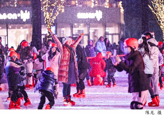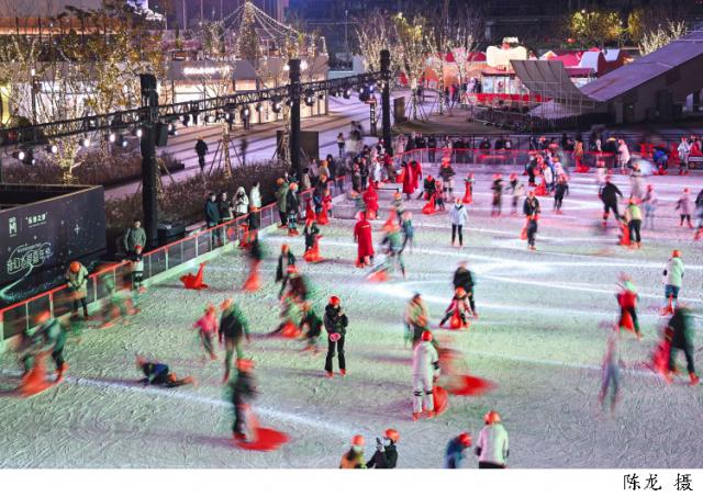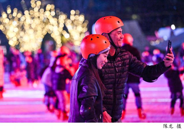 在白玉兰广场外建造的乐滑路真冰场 12 月 7 日本开门迎客至今,周末保持近距离 700 人数上冰人数。