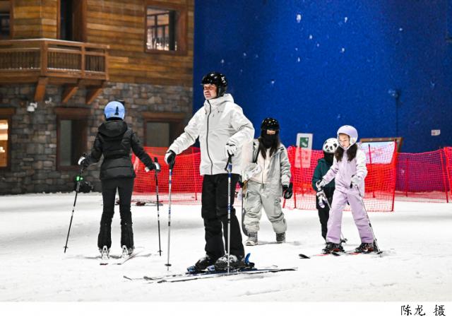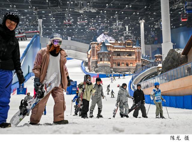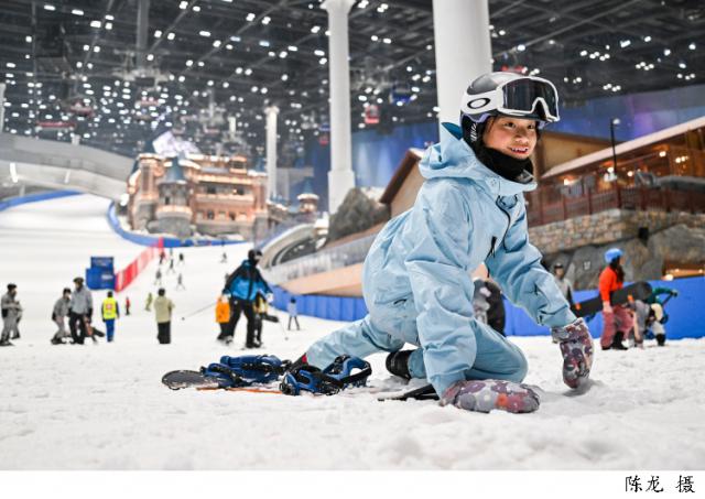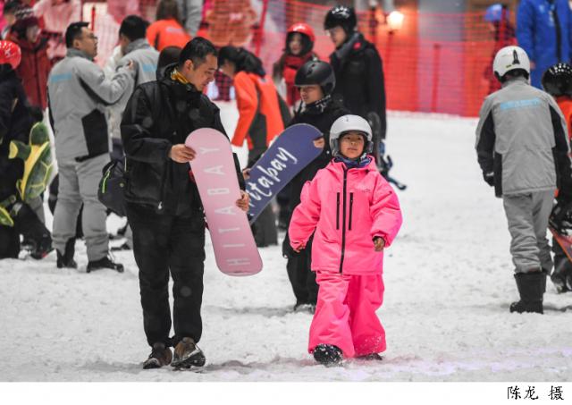 在临港新城,来自长三角的冰雪爱好者热情地“打开”了世界上最大的室内滑雪场,给寒冷的申城带来了冬天的一把火。用“快乐冰雪” 以“共创未来”为主题的第十一届全国大众冰雪季上海分会场活动在此开幕。从 8 岁至 66 年纪大了,各个年龄段的滑雪爱好者纷纷出现,感受冰雪运动的乐趣。