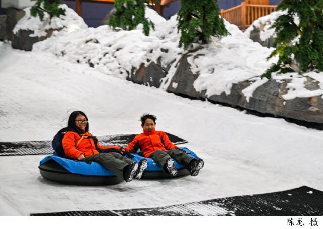 在室内滑雪场,耀雪冰雪世界的娱雪区变成了玩雪天堂。