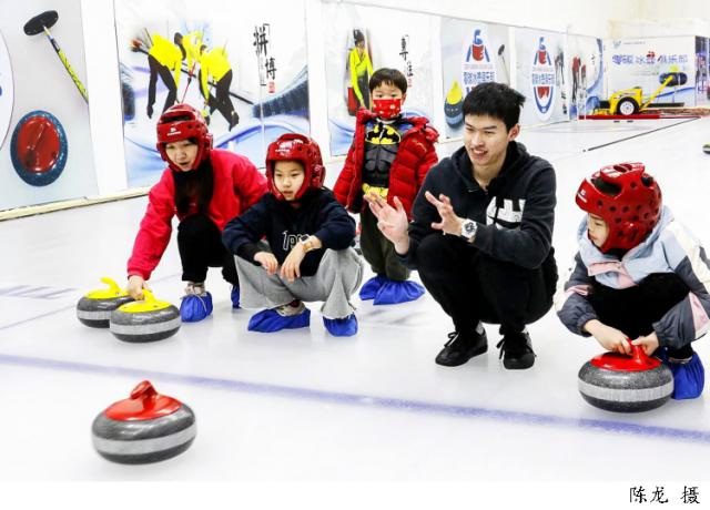 在上海青浦区零碳冰壶俱乐部,周边学校对冰壶运动感兴趣的同学分批前往场馆进行训练。场馆每周也固定。 5 天空对沪上冰壶爱好者开放。