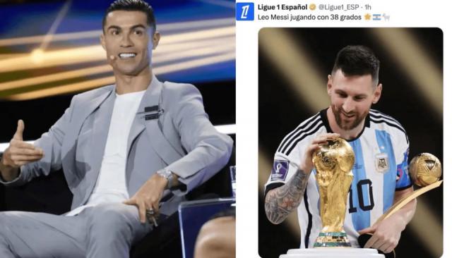 C 罗说沙特联赛的球员经常在 38 在高温下踢足球。随后,法甲官员推出了一张梅西与大力神杯的合照,并反击。 C 罗:“梅西在这里 38 在高温下踢球。”与此同时,他们也把梅西称为历史上最好的球员,以此来讽刺。 C 罗。