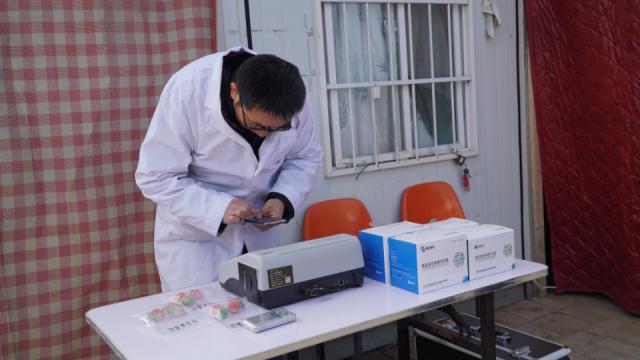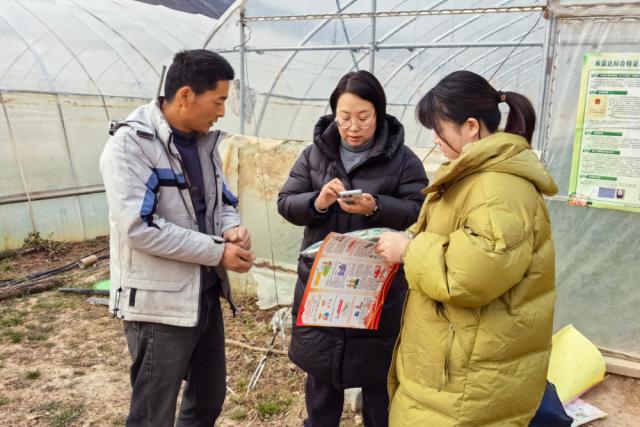 在检查过程中,工作人员对农产品的农药应用有了详细的了解,并向生产主体宣传了农产品的质量和安全知识,并张贴了禁止使用农药名录和宣传承诺合格证书的海报,指导生产主体使用手机。 APP 出具承诺合格证书,督促生产主体认真落实承诺合格证书制度,确保农产品质量安全可追溯。对于正在上市销售的草莓等水果,现场随机取样,采用胶体金快速检测技术进行农药残留检测。
