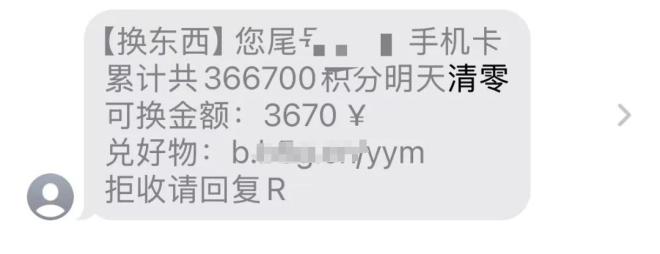 网友杨女士说,她最近收到了一条关于清零积分和兑换礼物的短信:“你的积分即将过期清零,现在你可以用你的积分兑换漂亮的礼物。”