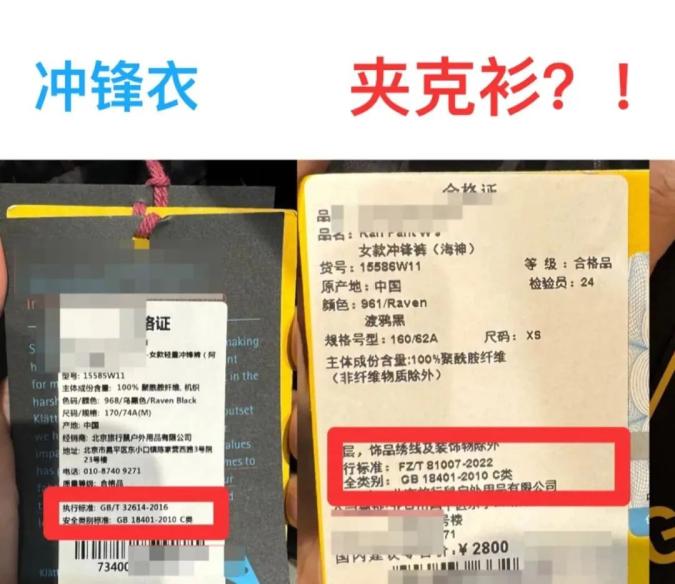 目前,夹克市场存在一些混乱。网上卖的夹克很多,宣传是运动夹克或者休闲夹克,标签上注明的执行标准是FZ/T 81007-2022或FZ/T 81007-2012,实际上是“挂羊头卖狗肉”。