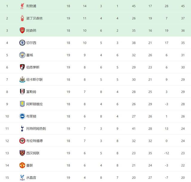 北京时间 12 月 30 一大早,英超联赛进行了 2024 除了切尔西、曼联和阿森纳,每年的最后一场比赛都会结束。所有其他比赛都结束了。曼城结束了无敌的颓势,利物浦继续处于优秀状态;诺丁汉森林一路飙升至积分榜第二。