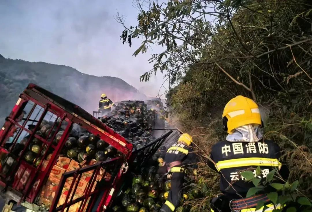 十一月,云南杭瑞高速公路,一辆装满西瓜的大货车起火,造成了大约18万元的经济损失。