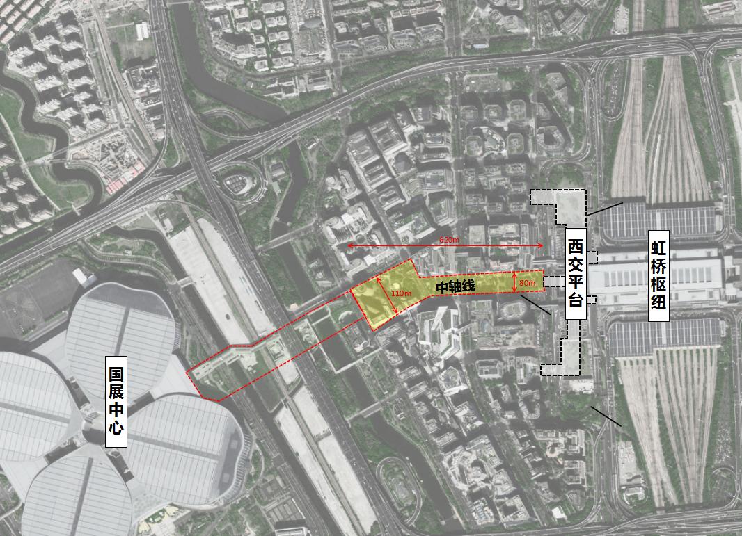 虹桥国际中央商务区核心区内,东至申虹路,西至申滨南路,南至绍虹路,北至苏虹路及相关地块红线,占地约6.2万平方米。