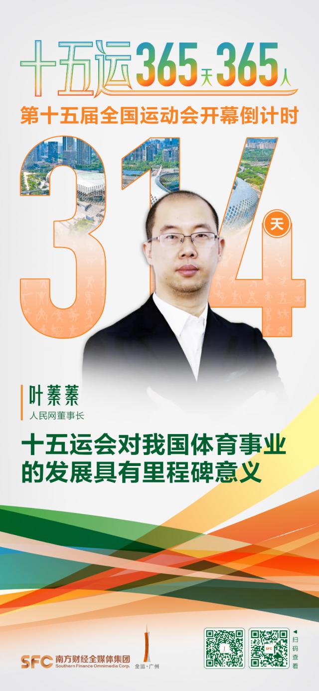 第十五届全国运动会将在 2025 年 11 月份在粤港澳三地举行。它是一项体育赛事,也是促进全民健身、促进体育事业高质量发展的重要机遇。在十五运会开幕倒计时一周年之际,南方财经全媒体集团与十五运会、残特奥会广州赛区执委会推出“十五运会” 365 天 365 “人”栏目聚焦选手、企业家、专家学者、体育爱好者、公众的全运故事和全运期待,让更多人了解和支持十五运,生动展现中国的体育精神、城市活力和文化魅力。