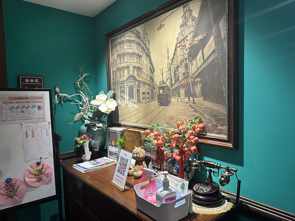 在石门二路街道白天护理中心,装饰品具有怀旧的复古风味。