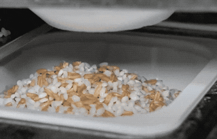 将煮熟的大米分散冷冻干燥,制成冷冻干燥的大米。和冷冻干燥的水果一样,冷冻干燥的大米非常轻,疏松多孔,非常适合徒步露营或灾难紧急时吃。加热水几乎和现在煮的大米一样。