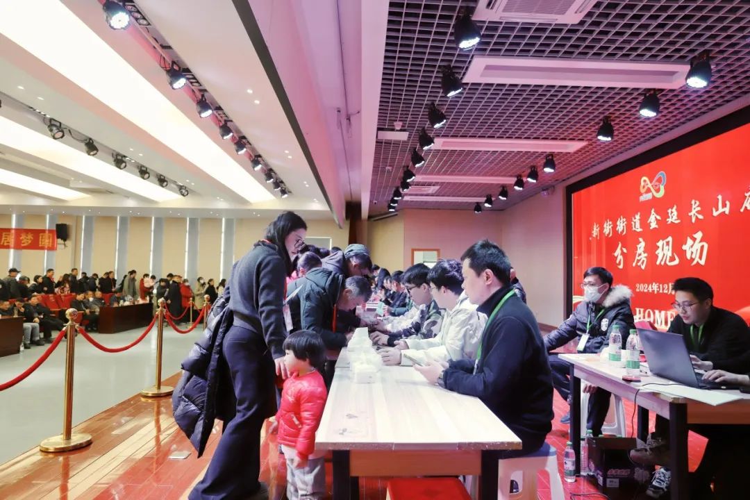 在分房现场,喜庆的新年“红色”随处可见。许多安置者穿着红色外套和红色围巾,希望能提高自己的运气。在工作人员的指导下,我们有序开展签到、登记、审批等环节,按照前期提取的顺序号分批等候,依次上台抽号选房,签字确认...现场井然有序。