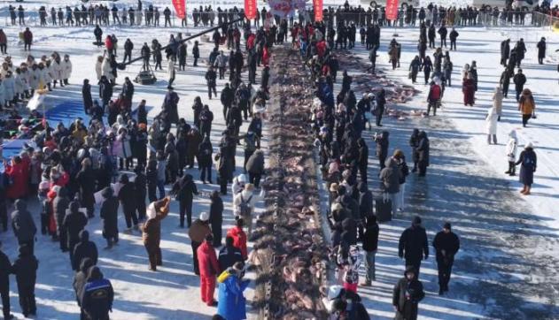黑龙江“冷水鱼”千年渔猎、生态渔业,持续到2025年2月14日。•冬季捕鱼季”系列活动,每日冰下走网打捞仍然是游客关注的焦点,冰冻的湖面,也因此成为热闹的舞台。