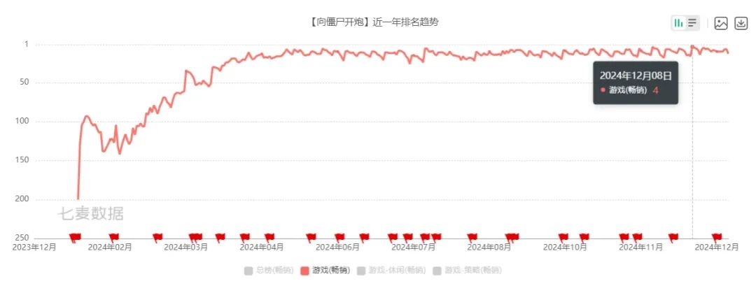 近一年来,《向僵尸开枪》iOS游戏畅销榜的排名趋势