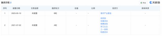 天眼查显示,2021 年到 2023 2008年,艾斯迪获得了两轮融资,投资者包括浙江民投、华晏资本、保腾创投、浙江比丘、三一创投、和君资本、海河产业基金。