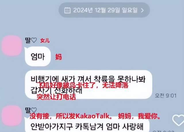另一位闺女遇难者,在生命的最后三分钟,给母亲留下了一句让人肝肠寸断的话。9:01 有时候,她告诉妈妈,鸟儿夹进了飞机,估计不能着陆,还突然被要求打电话。9:02,因为母亲没有接电话,她在那里。 Kakao Talk 留言“妈妈,我爱你”。但是,仅仅一分钟后,就发生了空难。最后一刻,她首先想到的是自己的母亲,那简单的三个字“妈妈我爱你”,蕴含着无尽的爱与不舍。多么希望时间能在我们身上? 9:02 永远固定下来,让那些担心的家庭继续给家人发信息和打电话,但上帝是如此残酷,以至于时间无情地消失了。 9:03,破坏了数百个家庭的幸福。
