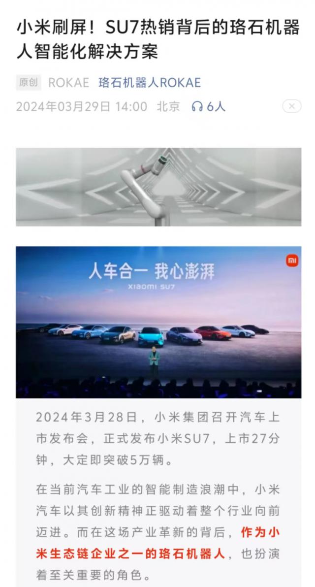 值得注意的是,珞石机器人和最近爆红的小米。 SU7 也有不浅的渊源。其车载空调智能生产线的R&D和制造工作由其参与。此前,他们还与小米智能工厂合作,帮助其生产智能黑灯。