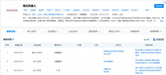 根据天眼查,珞石机器人自行检测 2015 年 5 每月正式运营,共经历 8 轮换融资,累计融资近 15 1亿元,投资者包括新希望集团、襄禾资本、中国制造业转型升级基金、新业资本、远翼投资、深圳创投、德联资本等。