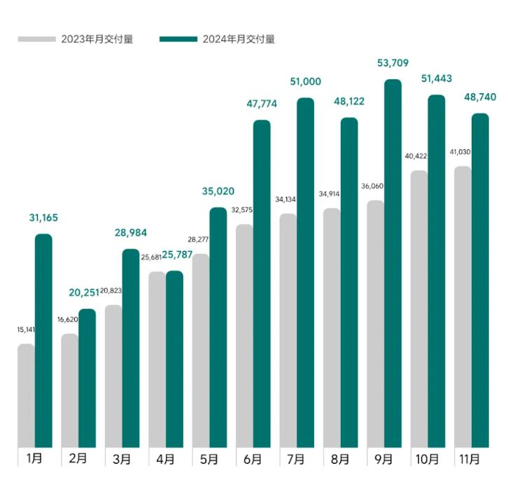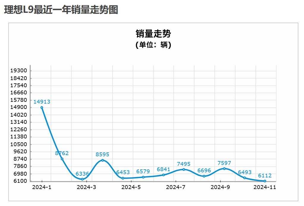 理想这边的 L9 ,去年下半年几乎是月月破万,但是到了今年,情况明显下降, 11 月份只有 6 千多台。