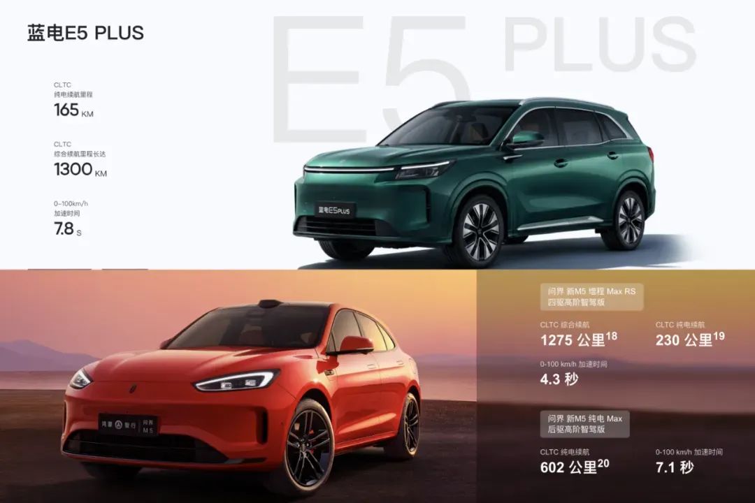 不久前,赛力斯也出现了蓝电。 E5 PLUS ,和问界 M5 大小差不多,主要是去掉华为的加持,然后把动力和底盘材料砍下来一点,但是价格只需要一点。 9.98 万元起。