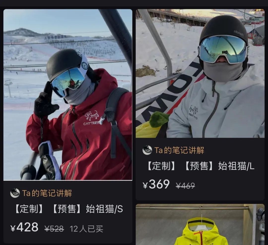 在社交媒体上,更具个性和趣味性的滑雪服逐渐成为流量焦点,价格贴近百姓的白牌「始祖猫」正在悄然成为新的流量责任,价格只是高端品牌「始祖鸟」十分之一。