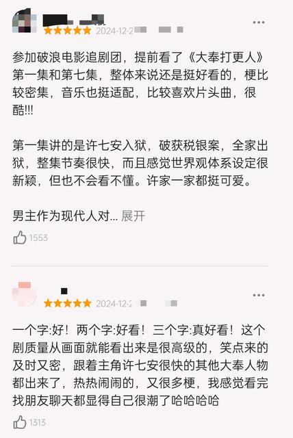 除了高收视率,《大奉打更人》的口碑也出乎意料的惊艳。豆瓣评论区有四五星好评,网友纷纷称赞:剧情欢快,演员演技在线,央视又抓到了王炸剧。