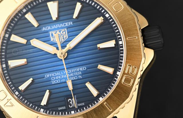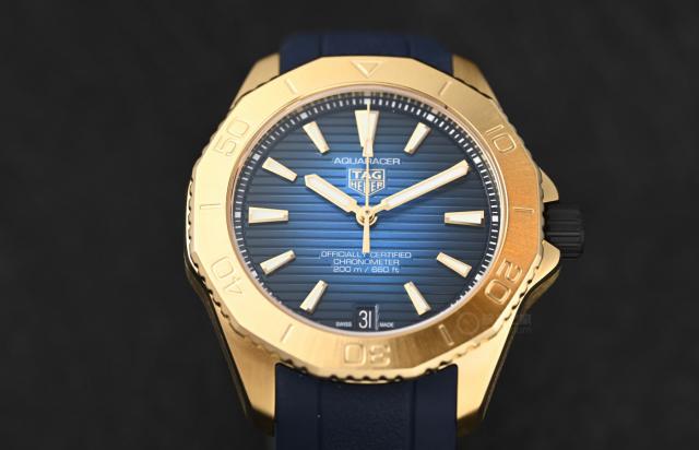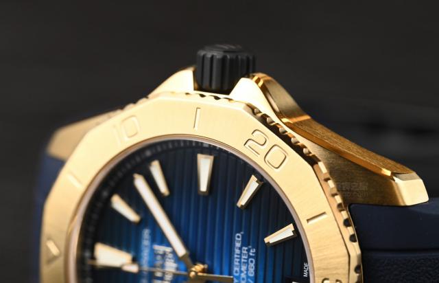 从表壳到表圈都是使用的。 18K 黄金制造,即使是表圈上的潜水刻度也是直接雕刻在足金上,这在市场上的手表中已经很少见了。所以,在 18K 全金表中的公价在 14 事实上,这是非常合理的。毕竟这么大一块黄金本身的价值已经占了很大一部分。再加上其他技术和运动,最终组装成竞争潜力。 200 手表,可以说泰格豪雅基本上赚不到什么钱,甚至还有可能是“赔钱赚钱”。