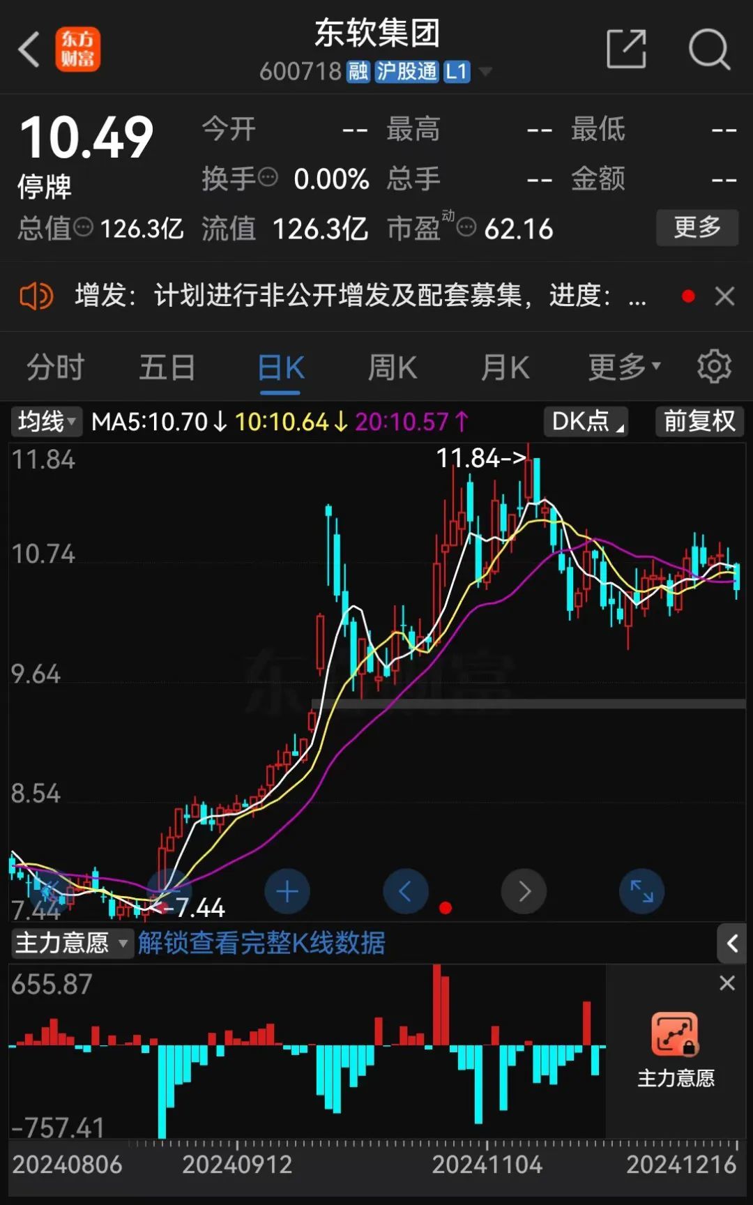 自12月31日开市以来,东软集团计划复牌。12月16日收盘,公司股价报10.49元/股,总市值126.3亿元。
