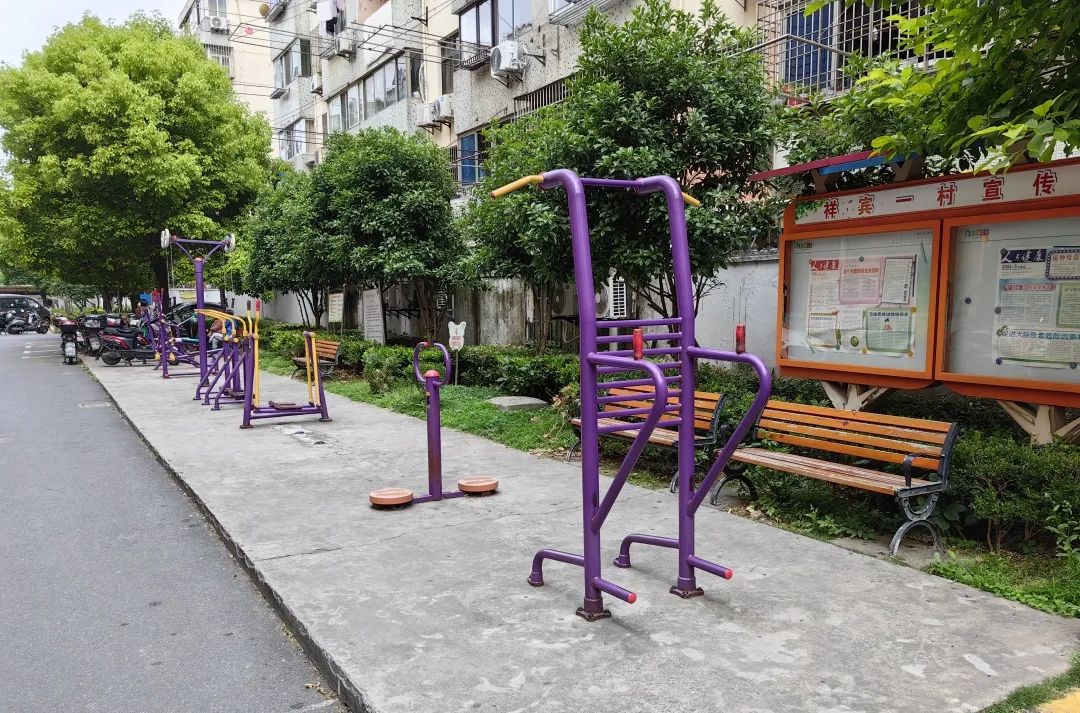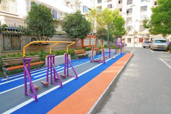记者在祥宾一村看到,小区新建的门简洁优雅,新建的外墙干净整洁。原来水泥地板的健身步道铺上了环保塑料和椅子,吸引了许多居民来健身和晒太阳。