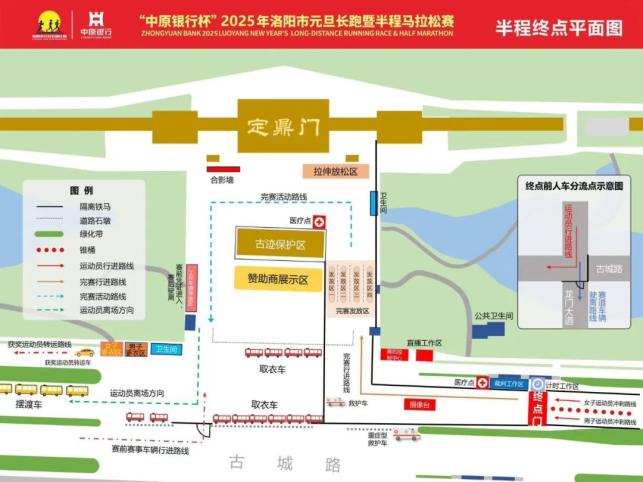 (二)终点区域:自2024年12月31日20时至次日12时,古城路(龙门大道至厚载门街)北半部分实行临时封闭,禁止车辆通行;自2025年1月1日8时50分至12时,古城路(龙门大道至厚载门街)南半部分实行临时封闭,禁止机动车通行。