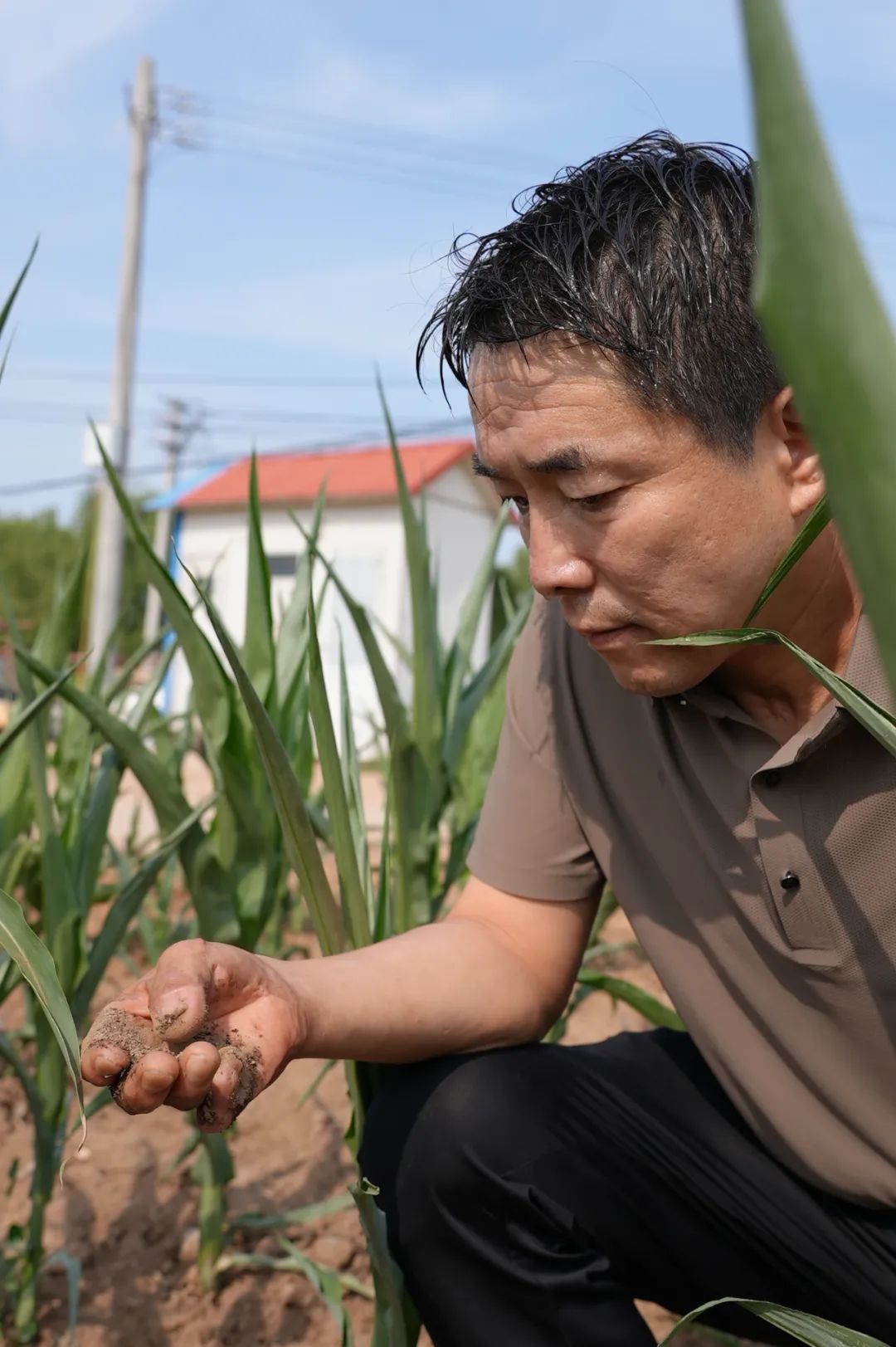 山西省长治市六城区2024年6月下旬,气象局工作人员顶着烈日,检查土壤水分。