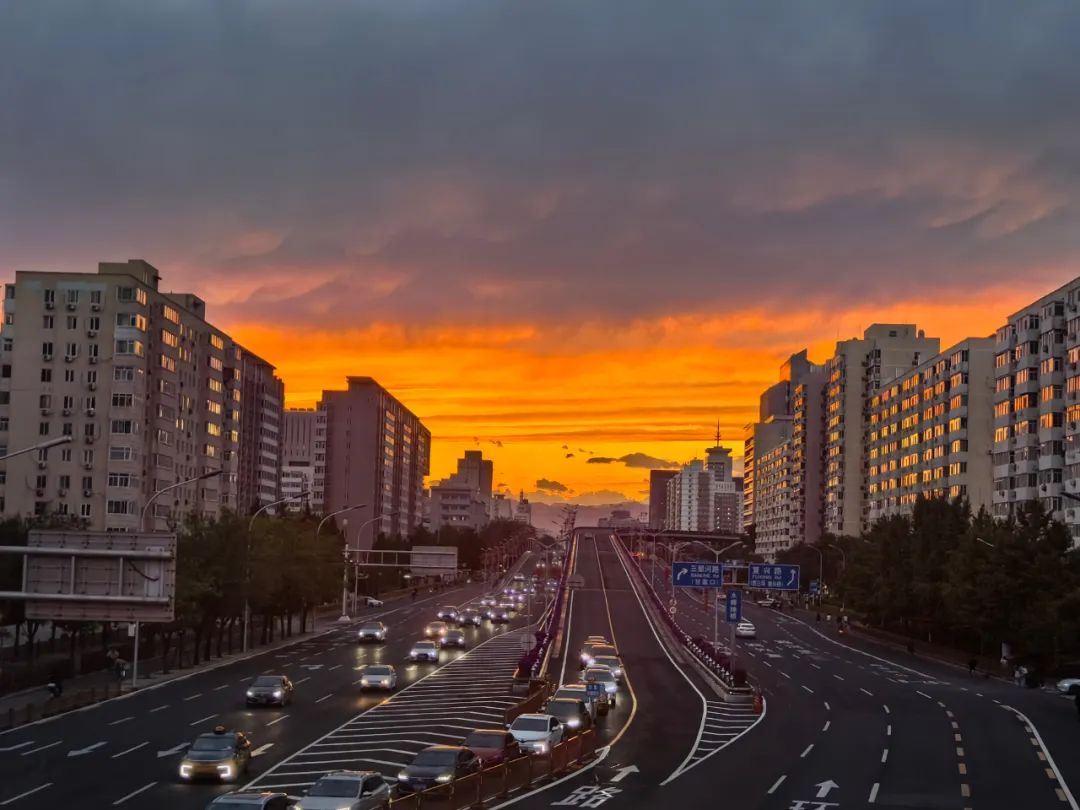 2024年9月30日晚上,北京的天空仿佛被火焰点燃,出现了一种艳丽的“火云”现象。
