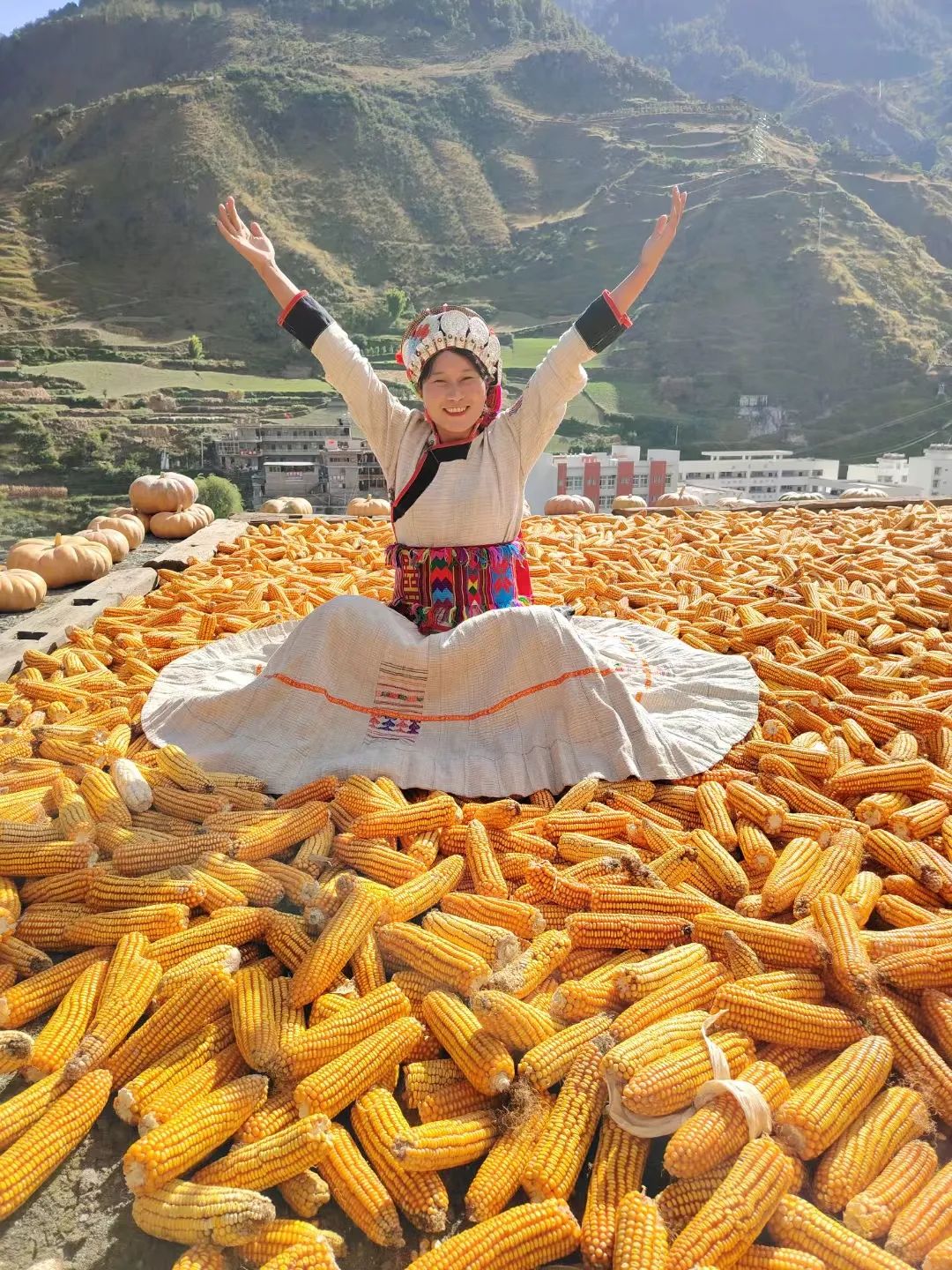 2024年11月下旬,在四川省凉山州木里藏族自治县俄亚纳西族乡俄亚大村,家家户户的屋顶上,每一寸空间都铺满了粮食,每一位村民的脸上都洋溢着喜悦。