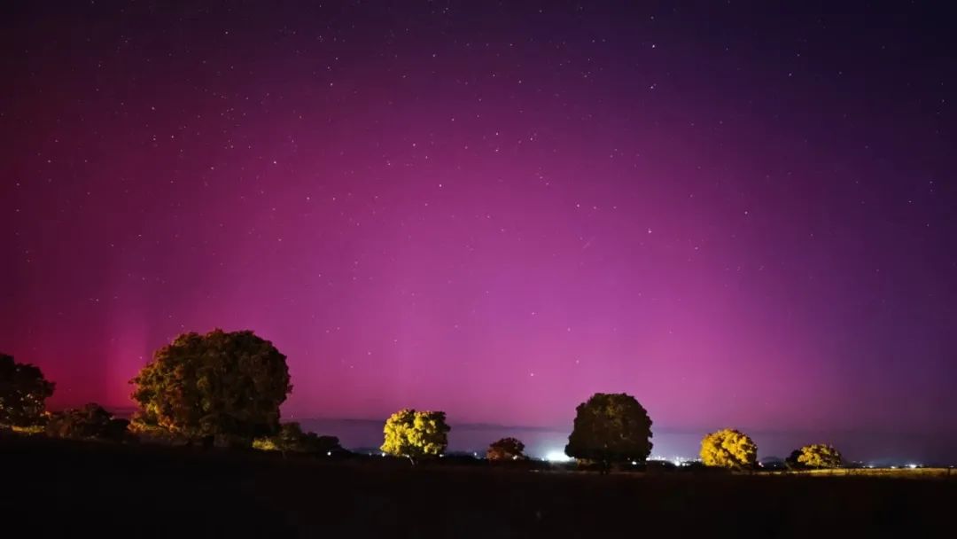 在内蒙古自治区通辽市科尔沁左翼后旗五角枫森林公园,2024年10月11日凌晨,极光出现在夜空中。