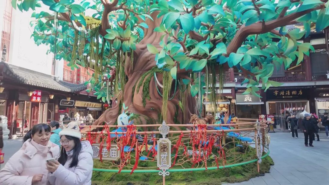 当我走进豫园商城时,我看到到处都是灯和颜色,非常热闹。走进九曲桥,仿佛踏入了一个“众生奇特,丛林天堂”的神奇世界。潺潺的流水和生物的歌声交织成生命的运动,丛林的气息扑面而来,草香和花香交织在一起,形成了一幅华丽而充满活力的画轴。在黄金广场上,一棵生命之树巍然屹立,许多生物栖息在其中,展现了人与自然和谐共生的美好景象。