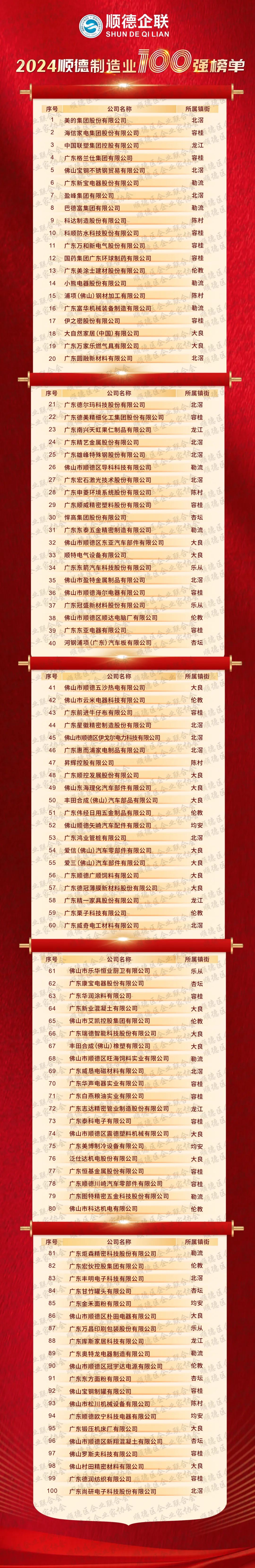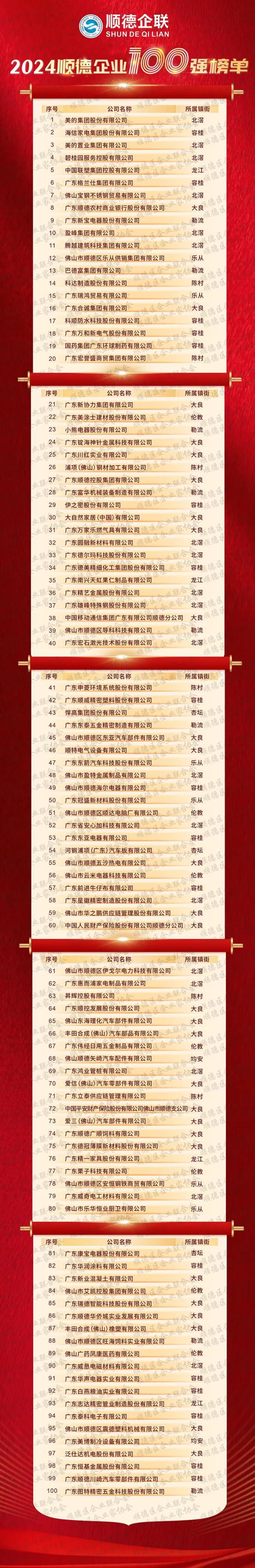 十二月二十九日,顺德区公布了顺德公司100强、制造业100强、民营制造业100强三大名单。其中,2024顺德公司100强新增13家,入市门槛8.25亿元。>>详细信息:顺德发布上下滑动查看。