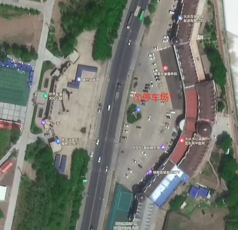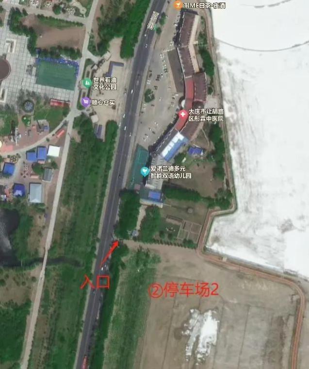 预计油田乐园南侧停车场有3000个停车位(如图所示②点)。
