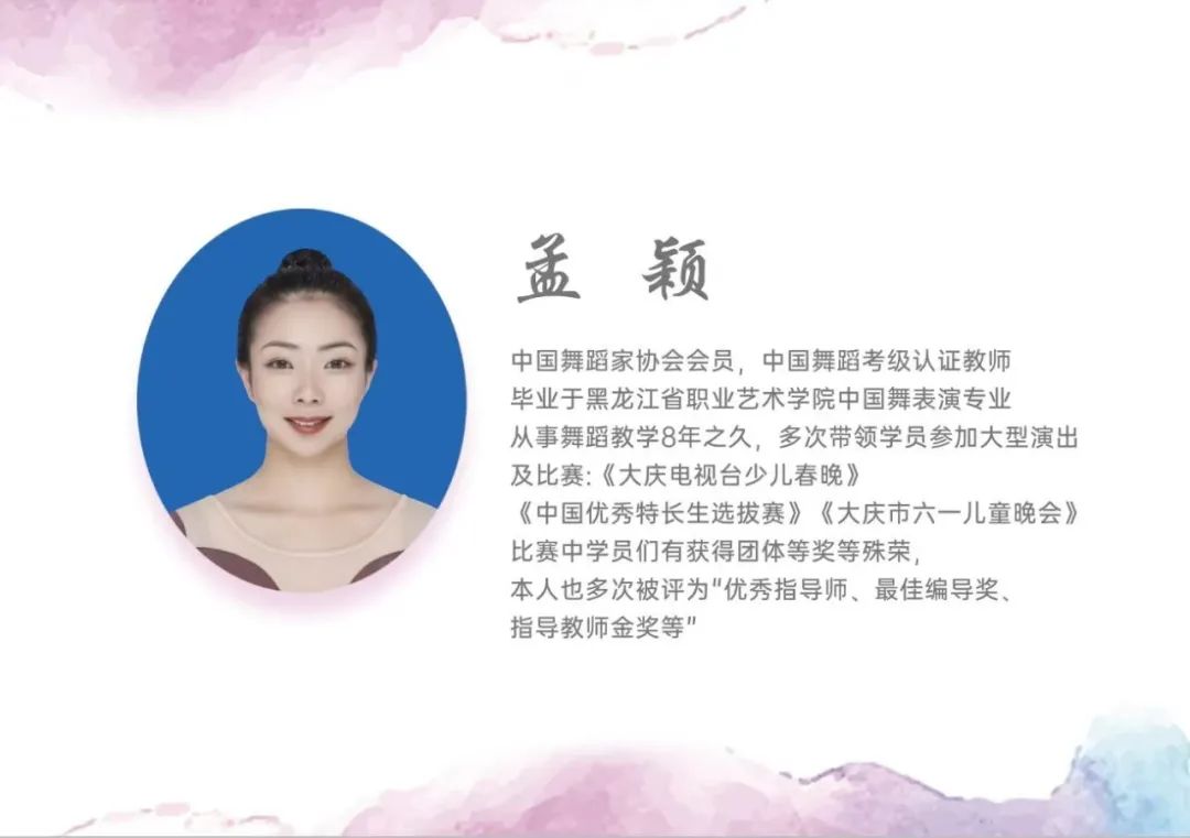 胡美娜文化艺术培训有限公司成立于2019年,是大庆市甲级民办培训中心、中国舞蹈协会5星级单位、中国舞蹈家协会大庆市级舞蹈考试单位。大庆市萨尔图区民办教育协会理事单位主要教授儿童中国舞蹈,并设立成人各类舞蹈、教师教师培训等科目。